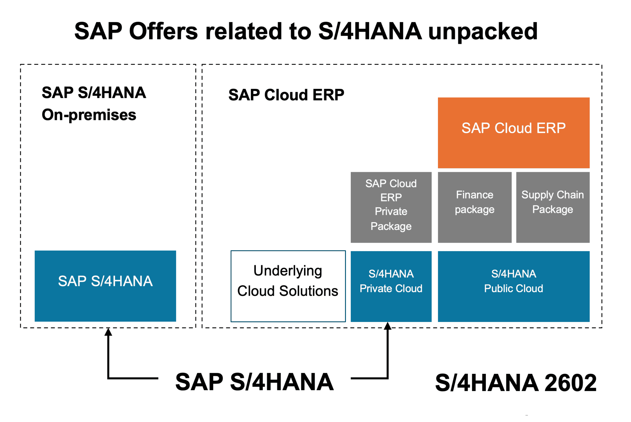 Meanwhile, the on‑premises version remains “SAP S/4HANA,” which runs on the same development cycle as S/4HANA Private Cloud on single-tenant implementations.