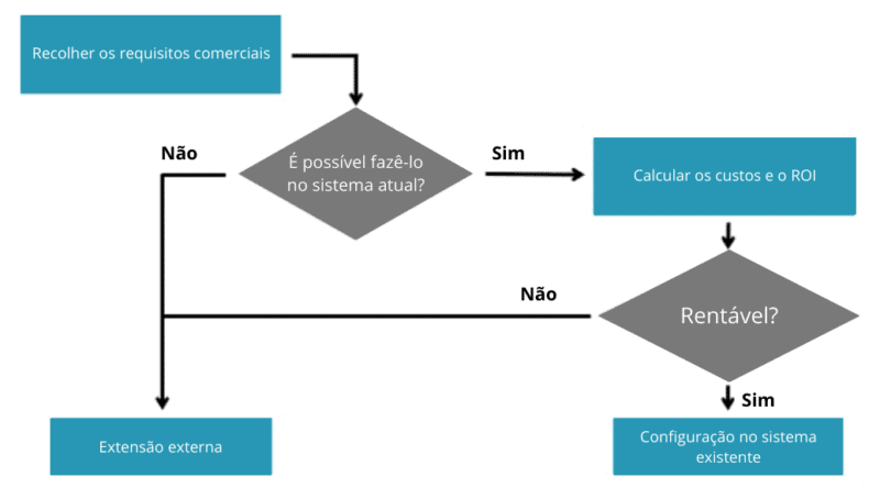 Comece com os requisitos de negócios e avalie se eles podem ser realizados em sistemas existentes. Se sim, calcule o custo e o ROI. Se for econômico configurar sistemas existentes, resista às solicitações e incentivos do fornecedor para seguir seu roadmap. Se não for econômico continuar com os sistemas existentes e reconfigurados, procure a melhor opção de fornecedor a ser buscada — apenas certifique-se de que o fornecedor escolhido ofereça suporte à sua abordagem de negócios modular.