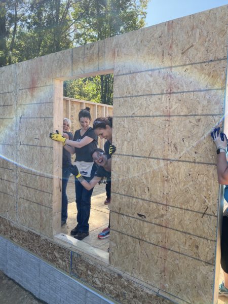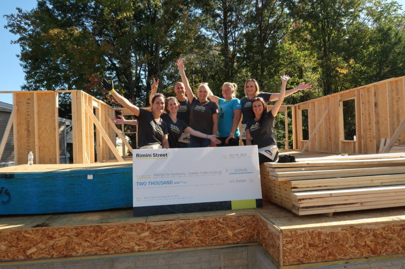 While the homes are sold without a profit, it takes thousands of volunteer hours to build it from scratch and maintain it afterwards. Rimini Street Team Viriginia was more than excited to answer the call of duty and had a terrific time too! While only a couple of us had experience with carpentry, we were given precise instructions and guidance for wall building (and erecting!) and managed to put up 3 walls within hours. We hammered, sawed, lifted, fitted, and laughed from morning until afternoon, and celebrated the perfect afternoon with high fives, secret messages written into the walls, and good eats afterwards.