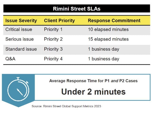 Rimini Street assigns you a dedicated PSE who speaks your language, is available in your time zone and stays familiar with your account. With our deep bench of experts around the globe, you have the power of hundreds of experienced engineers who work together to resolve your cases quickly and efficiently.