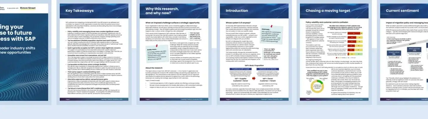 SAP 推動雲端 ERP 解決方案與訂閱模式,令客戶感到擔憂與困惑。好消息是,儘管原廠壓力大增,許多企業組織已找到一套既能保留彈性與成本,又能加速業務成果的策略。